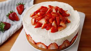 mix sugar , flour ,butter, milk, egg , baking powder and lemon zest.Put mixture evenly into 2 round pans .Bake at 400 for 15 mins or until golden brown .Slightly mash strawberries .Whip heavy cream until stiff peaks for fold in strawberries.Spread onto middle layer and on top of the cake .Ready to serve.